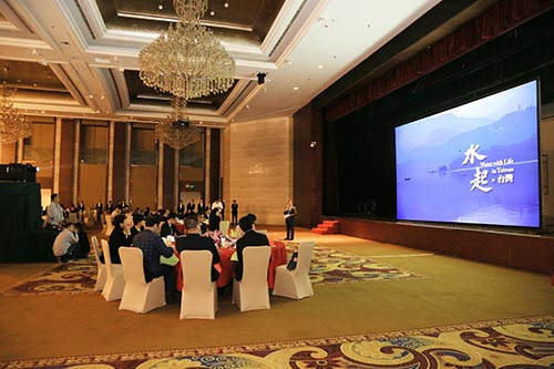 圖7 午餐期間與會(huì)嘉賓一同觀看由臺(tái)達(dá)8K投影儀呈現(xiàn)的8K影片《宜居江南——中達(dá)低碳住宅》及《水起 臺(tái)灣》。